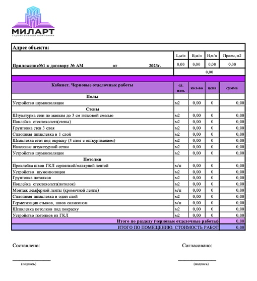 Строительная компания «Миларт» вот уже более 10 лет делает красивые и качественные дизайны и ремонты квартир. Наше основное преимущество в том, что мы фиксируем перечень и стоимость работ перед началом сотрудничества. Такой важный нюанс снимает главный риск для клиента, такой как - увеличенная и «раздутая» стоимость в актах выполненных работ!